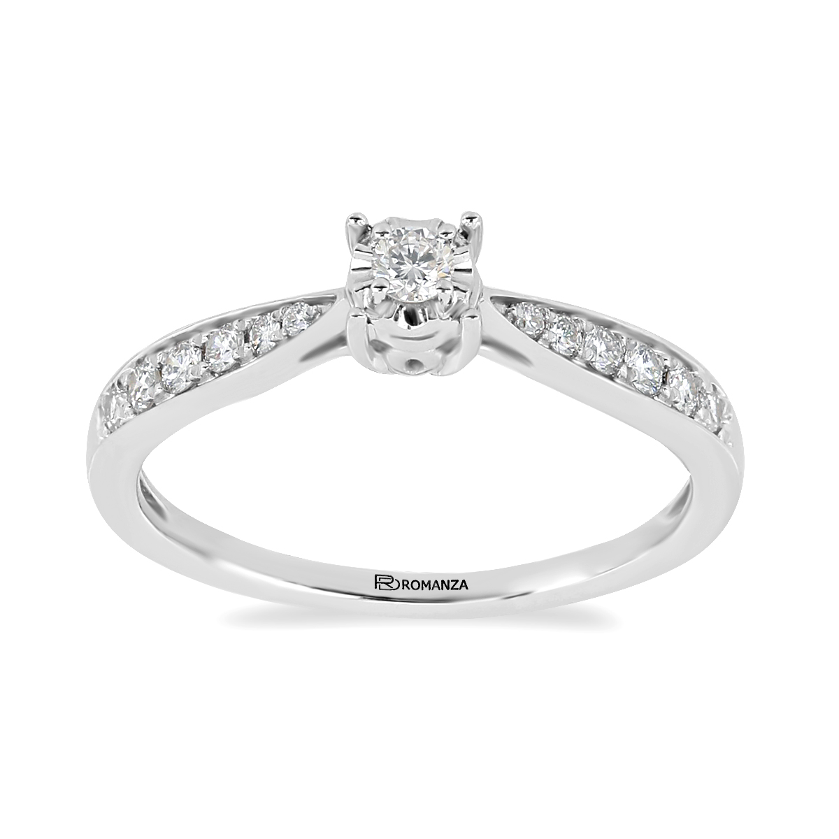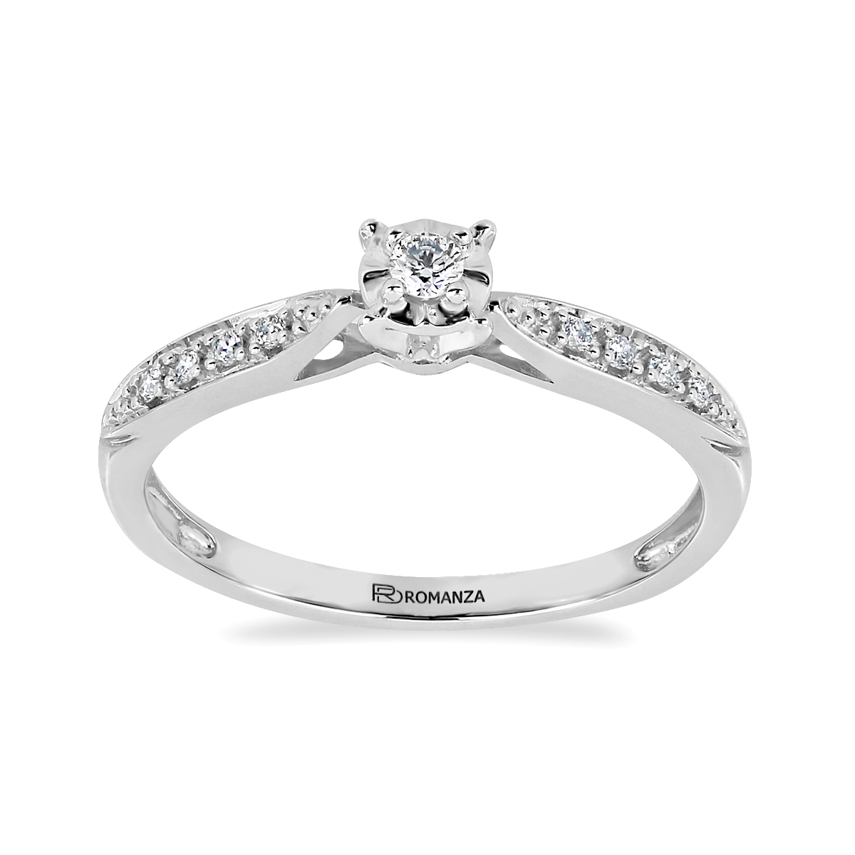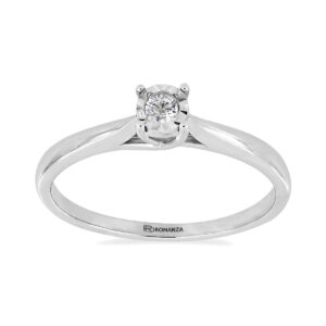 Anillo Solitario Ilusión con Montadura 0.09 Quilates de Diamante en Oro Blanco de 14 kt