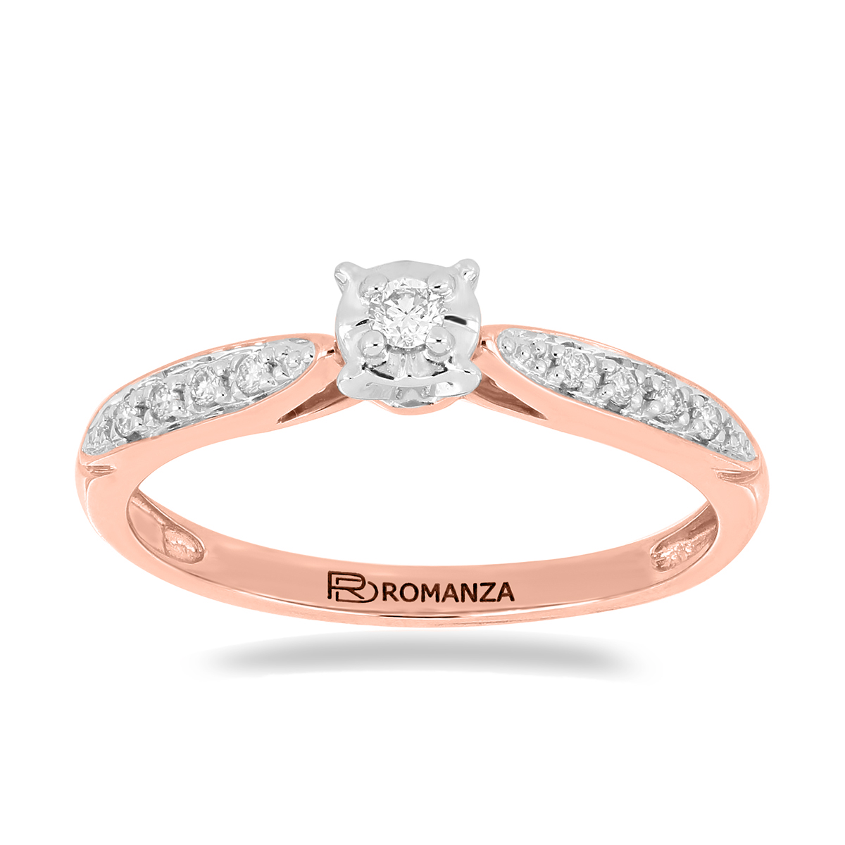 Anillo Solitario Ilusión con Montadura 0.09 Quilates de Diamante en Oro Rosa de 14 kt