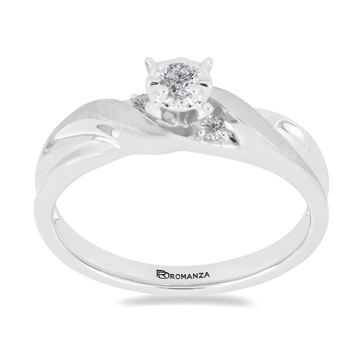 Anillo Solitario Ilusión con Centro 0.06 Quilates de Diamante en Oro Blanco de 14 kt
