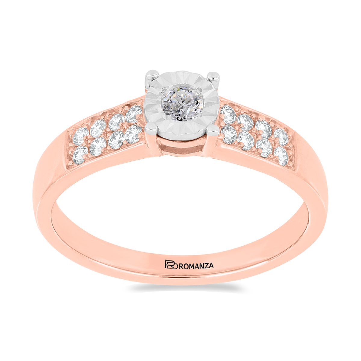 Anillo Solitario Ilusión con Montadura 0.26 Quilates de Diamante en Oro Rosa de 14 kt
