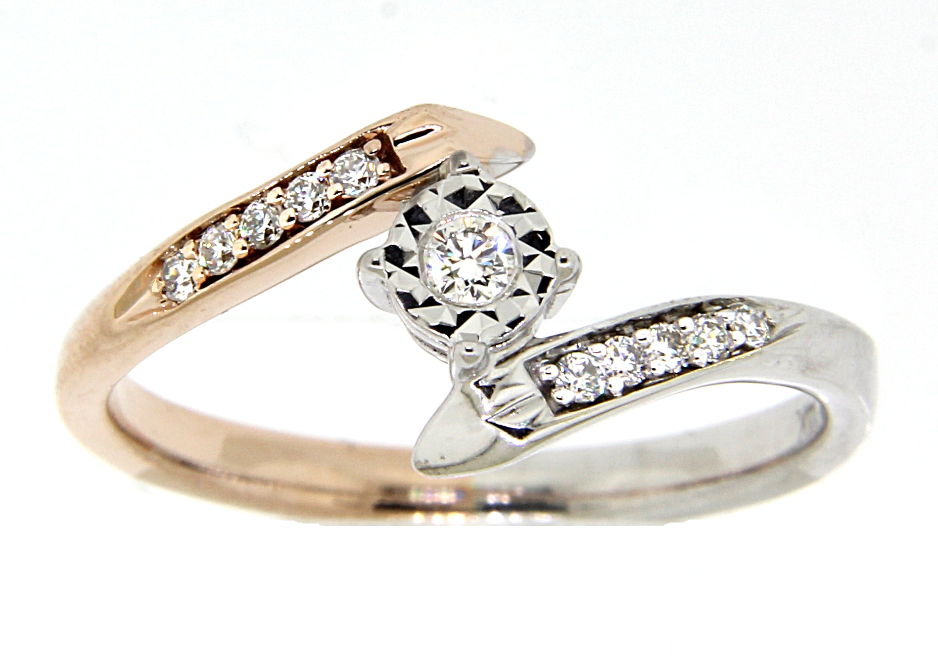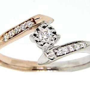 Anillo Solitario Ilusión con Montadura 0.12 Quilates de Diamante en Oro Combinado de 14 kt
