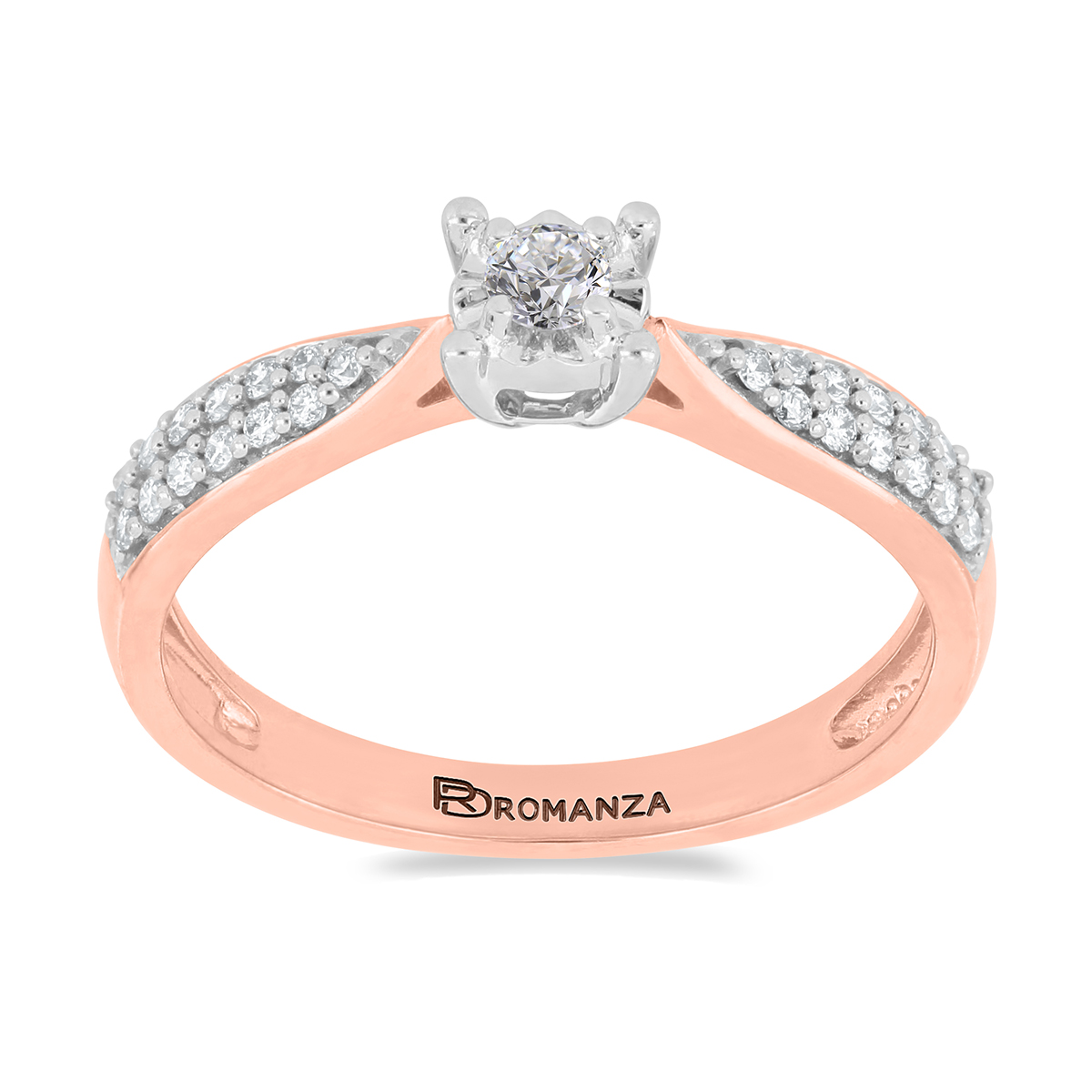 Anillo Solitario Ilusión con Montadura 0.25 Quilates de Diamante en Oro Rosa de 14 kt