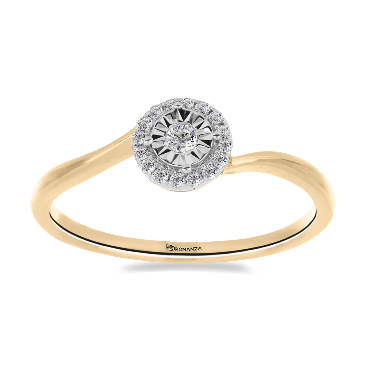 Anillo Solitario Ilusión con Centro 0.10 Quilates de Diamante en ORO AMARILLO de 14 kt