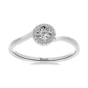 Anillo Solitario Ilusión con Montadura 0.10 Quilates de Diamante en ORO BLANCO de 14 kt