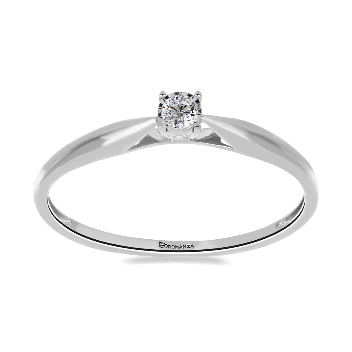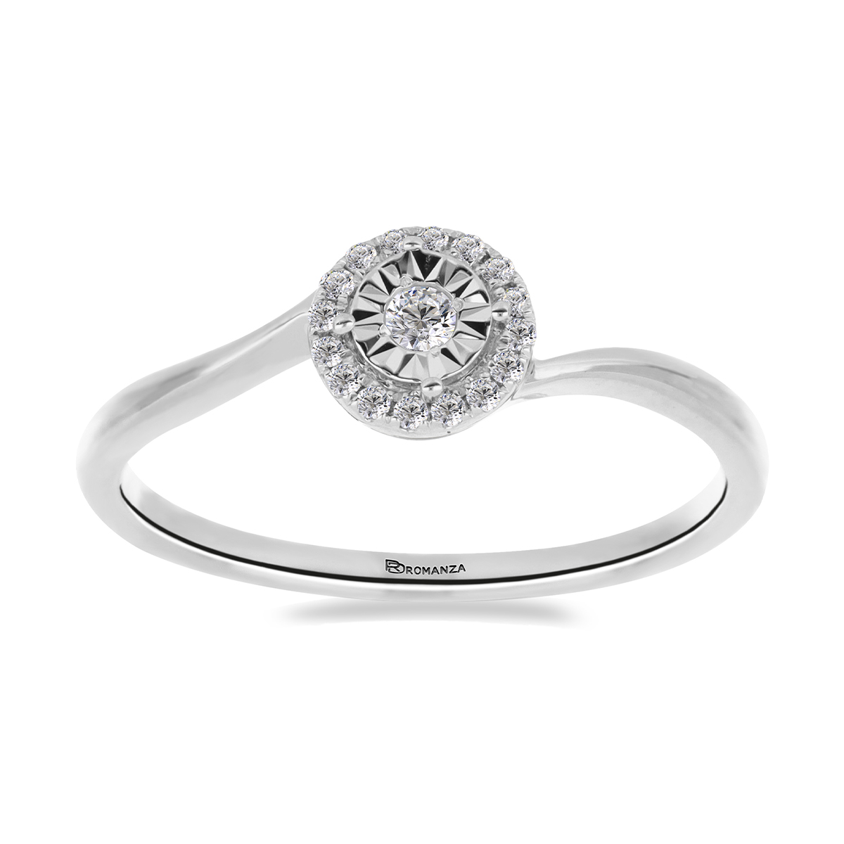 Anillo Solitario Ilusión con Centro 0.05 Quilates de Diamante en ORO BLANCO de 14 kt