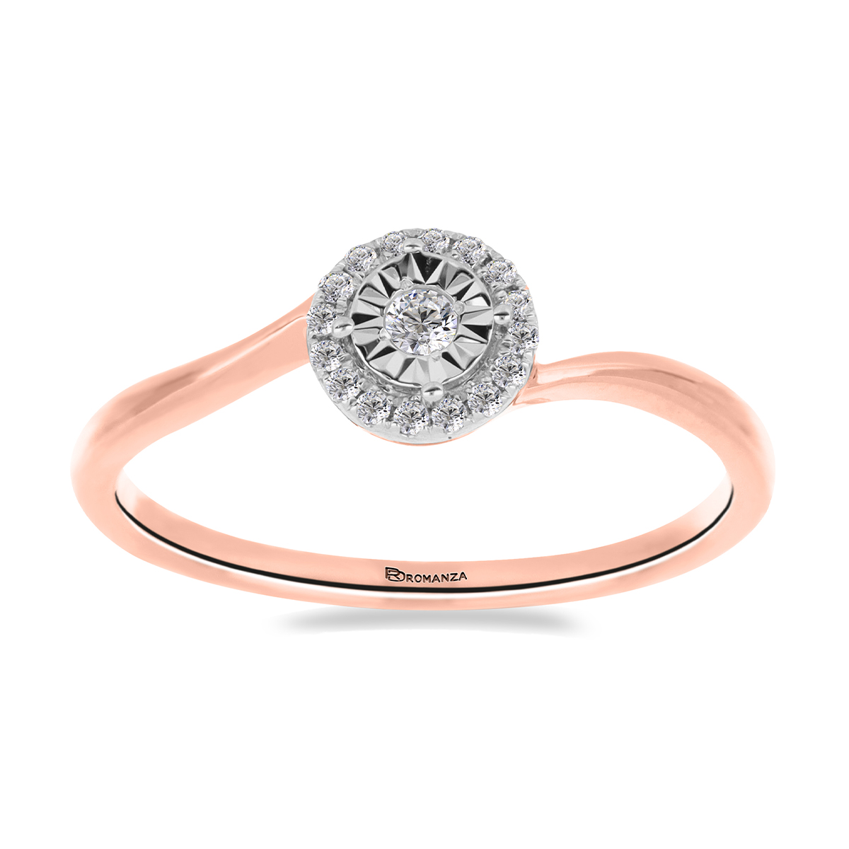 Anillo Solitario Ilusión con Centro 0.06 Quilates de Diamante en ORO ROSA de 14 kt