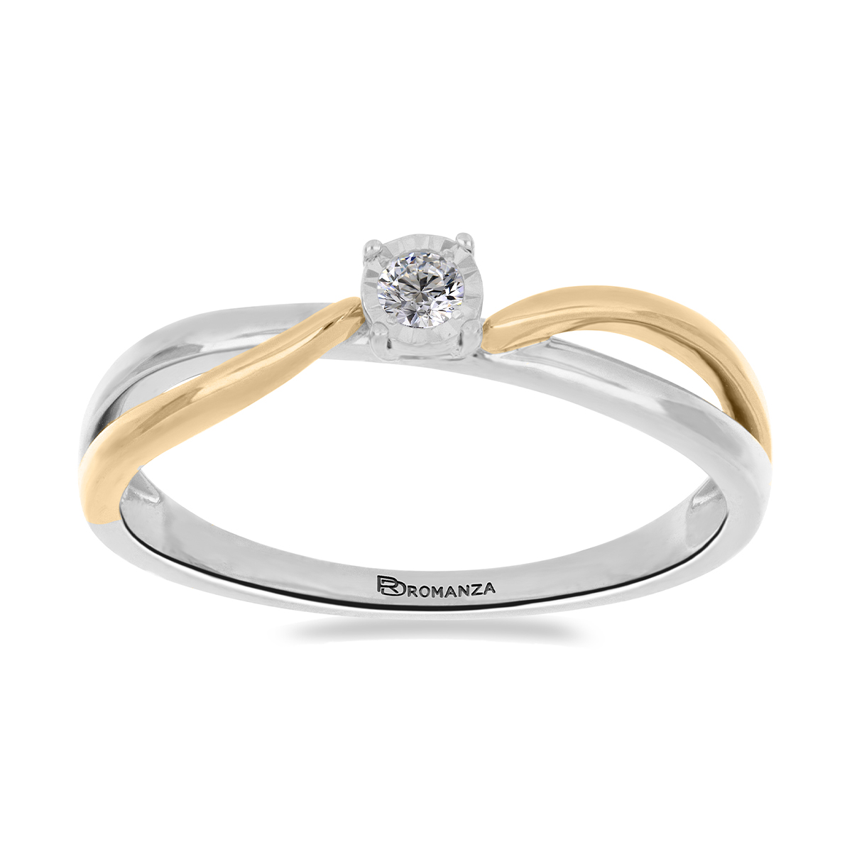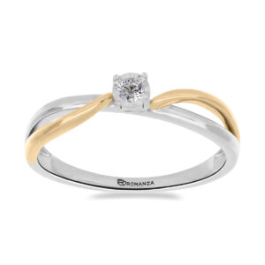 Anillo Solitario Ilusión con Centro 0.05 Quilates de Diamante en ORO COMBINADO de 14 kt