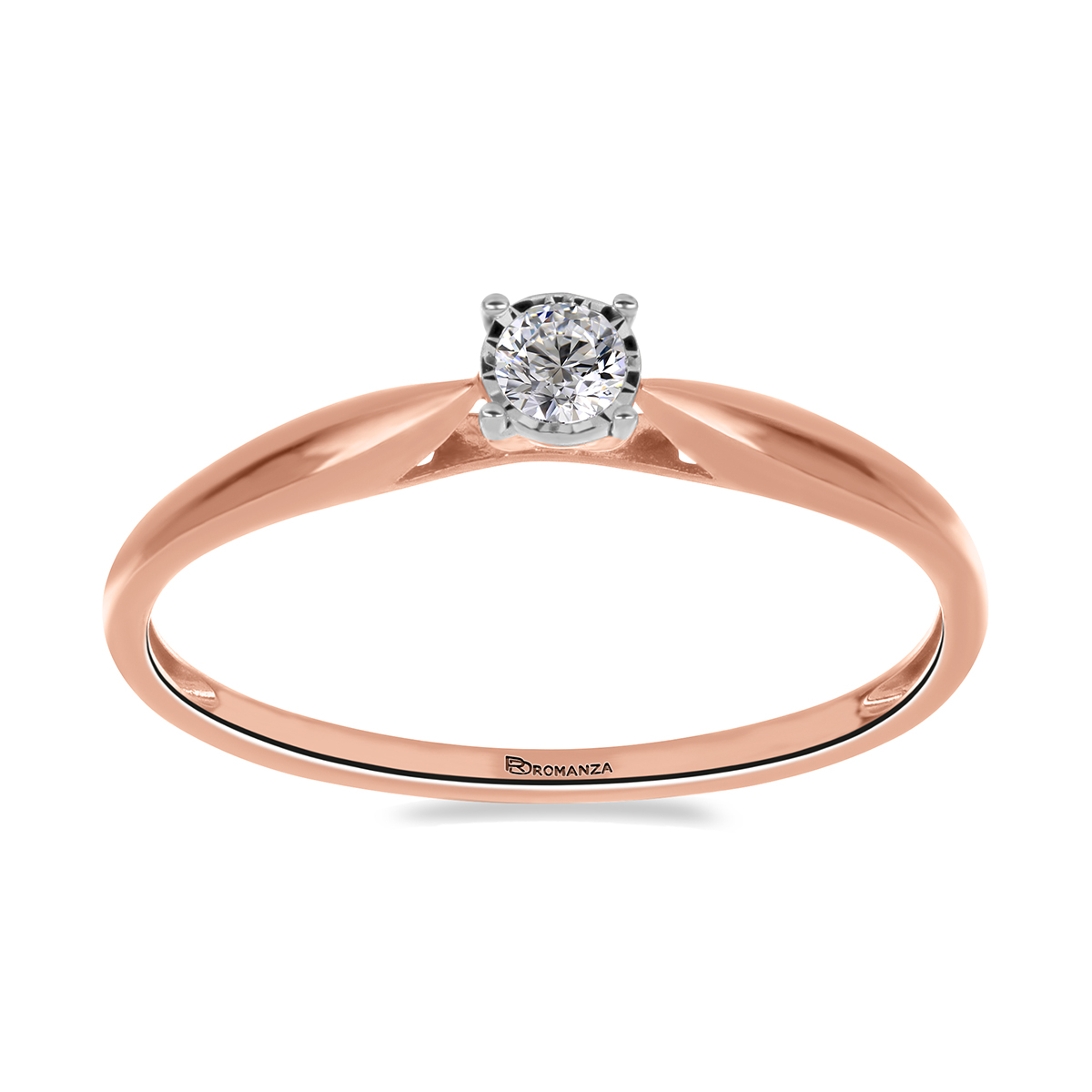 Anillo Solitario Ilusión con Montadura 0.10 Quilates de Diamante en ORO ROSA de 14 kt