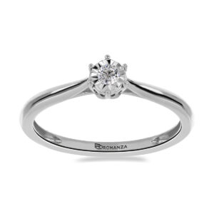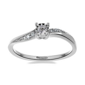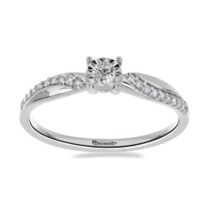 Anillo Solitario Ilusión con Montadura 0.10 Quilates de Diamante en ORO BLANCO de 14 kt