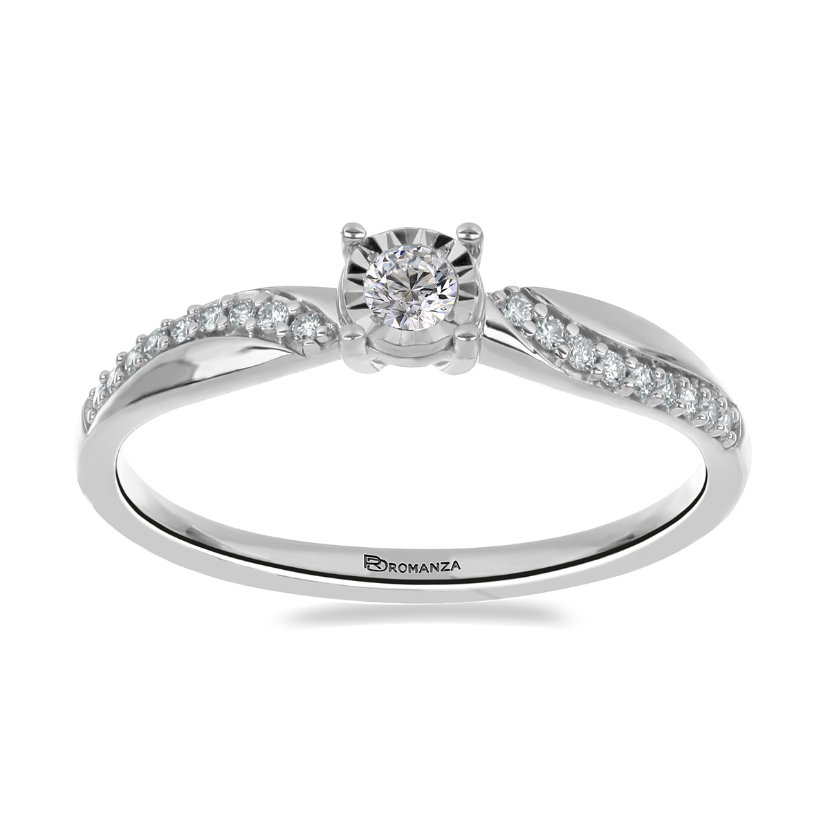 Anillo Solitario Ilusión con Montadura 0.17 Quilates de Diamante en ORO BLANCO de 14 kt