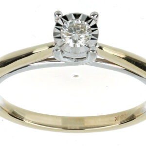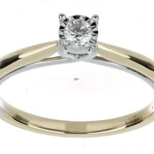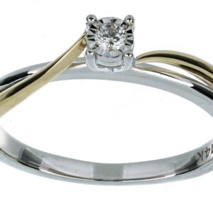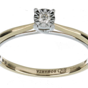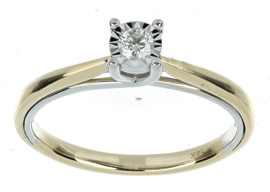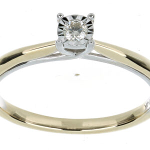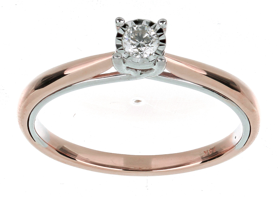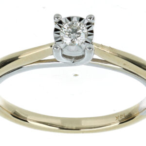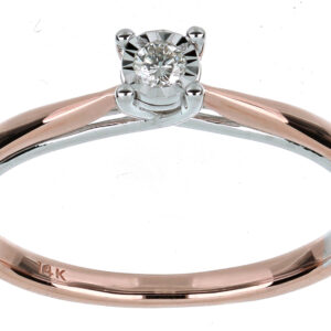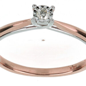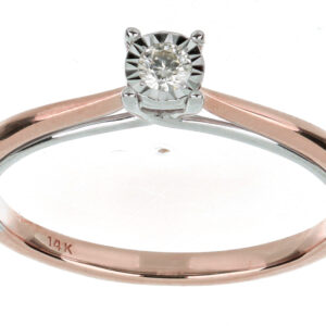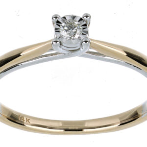 Anillo Solitario Ilusión con Centro 0.04 Quilates de Diamante en ORO COMBINADO de 14 kt