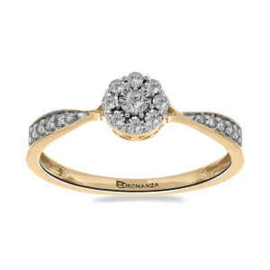 Anillo Solitario Roseta con Montadura 0.12 Quilates de Diamante en ORO AMARILLO de 14 kt
