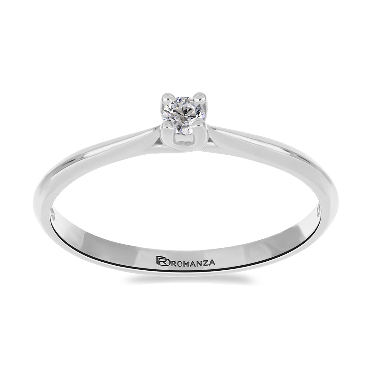 Anillo Solitario con Centro 0.12 Quilates de Diamante en Oro Blanco de 14 kt