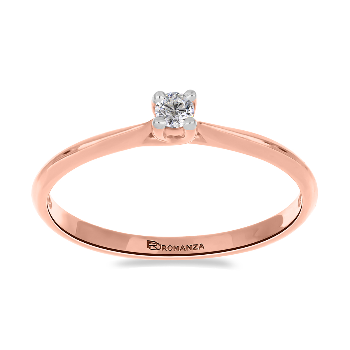 Anillo Solitario con Centro 0.12 Quilates de Diamante en Oro Rosa de 14 kt