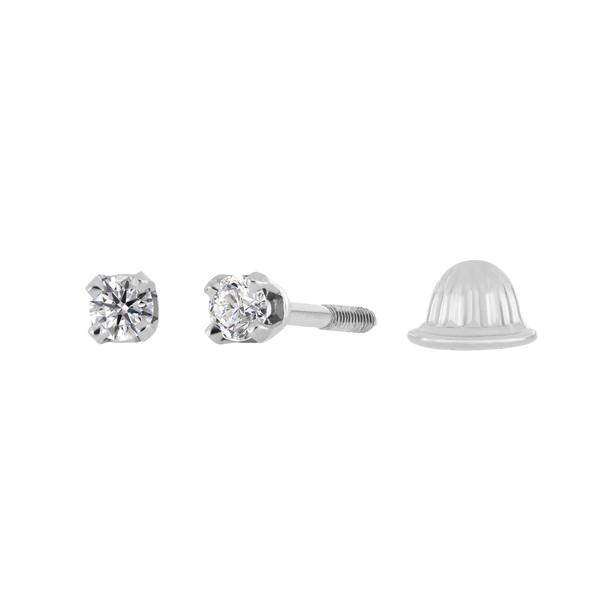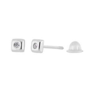 Aretes Bebé o Niña con Montadura 0.02 Quilates de Diamante en Oro Blanco de 14 kt