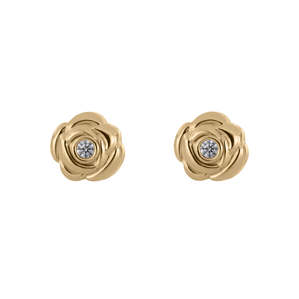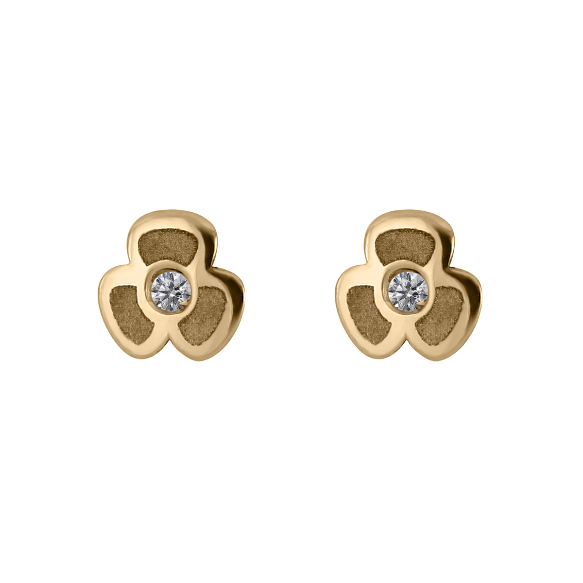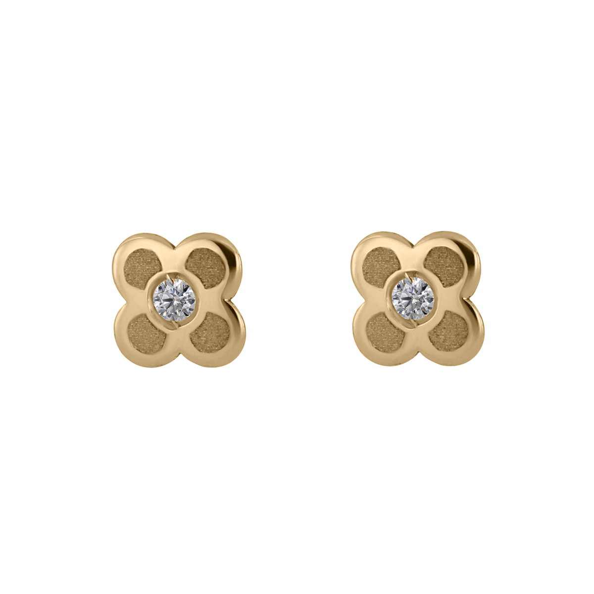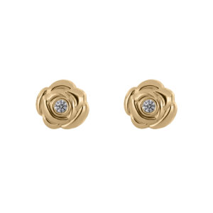 Aretes Bebé o Nña con Montadura 0.03 Quilates de Diamante en Oro Amarillo de 14 kt