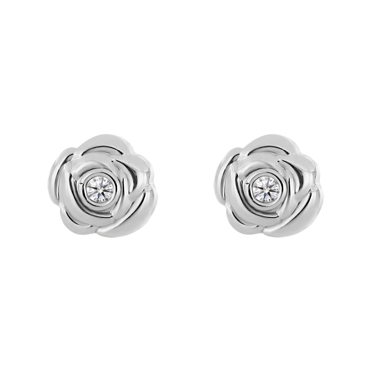 Aretes Bebé o Nña con Montadura 0.02 Quilates de Diamante en Oro Blanco de 14 kt