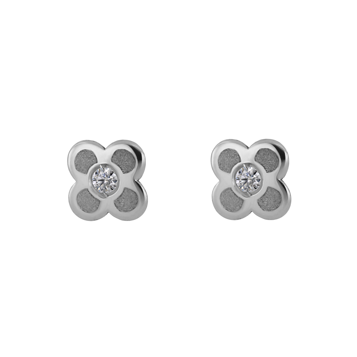 Aretes Bebé o Niña con Montadura 0.02 Quilates de Diamante en Oro Blanco de 14 kt