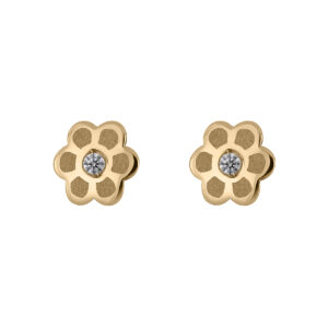 Aretes Bebé o Nña con Montadura 0.03 Quilates de Diamante en Oro Amarillo de 14 kt