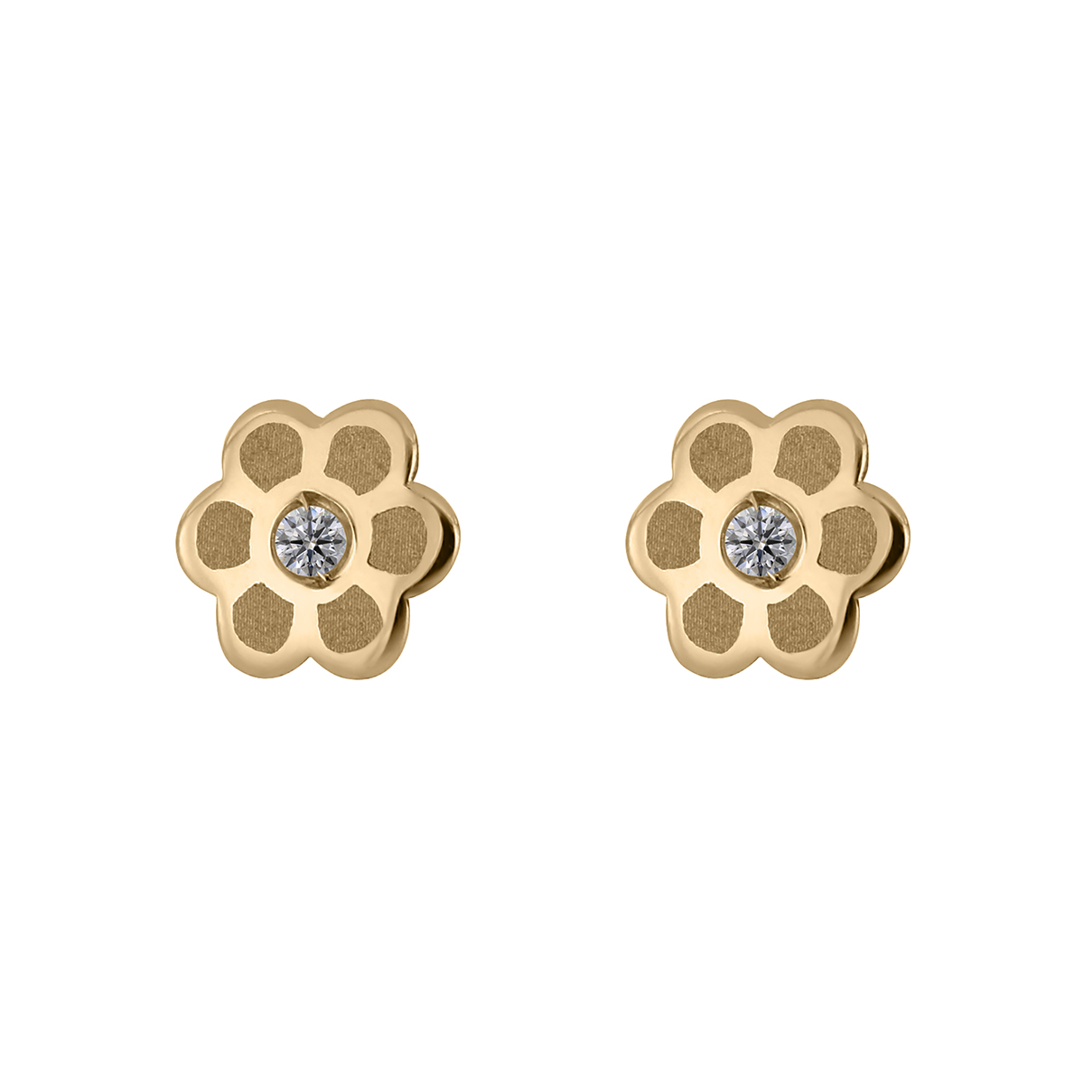 Aretes Bebé o Niña con Montadura 0.02 Quilates de Diamante en Oro Amarillo de 14 kt