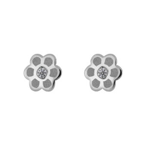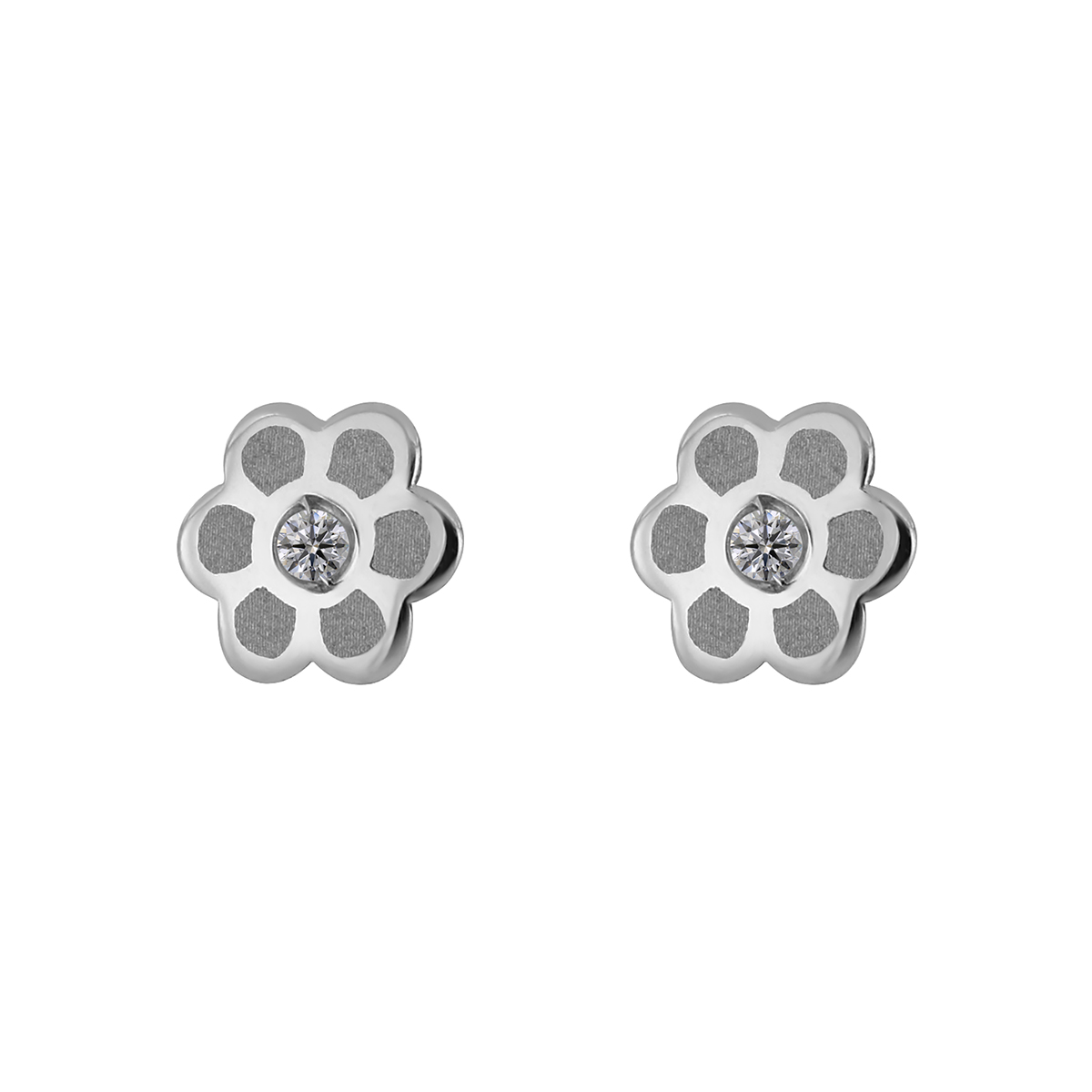Aretes Bebé o Nña con Montadura 0.01 Quilates de Diamante en Oro Blanco de 14 kt