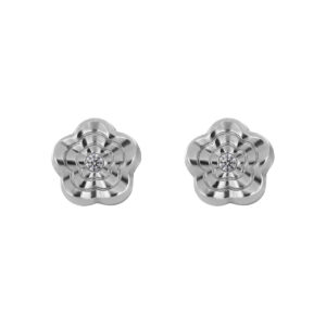 Aretes Bebé o Nña con Montadura 0.03 Quilates de Diamante en Oro Blanco de 14 kt