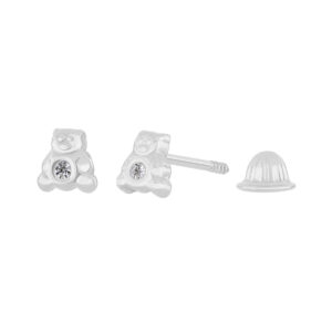Aretes Bebé o Niña con Montadura 0.02 Quilates de Diamante en Oro Blanco de 14 kt