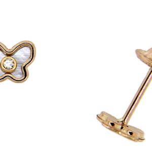 Aretes Bebé o Niña con Centro 0.05 Quilates de Diamante en Oro Rosa de 14 kt