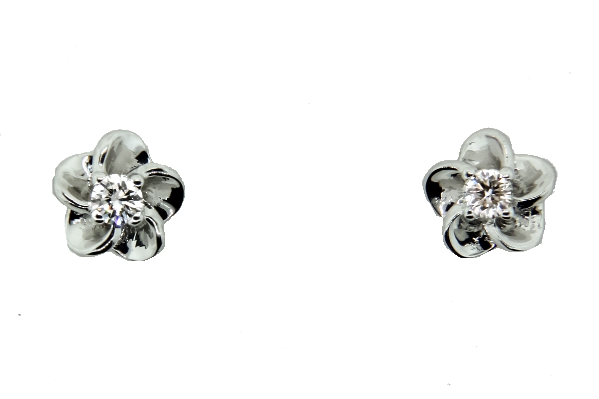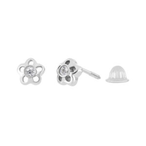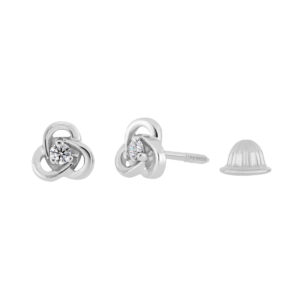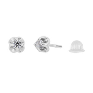 Aretes Bebé o Niña con Centro 0.04 Quilates de Diamante en Oro Blanco de 14 kt