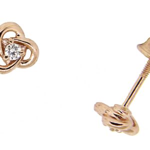 Aretes Bebé o Niña con Centro 0.06 Quilates de Diamante en Oro Rosa de 14 kt