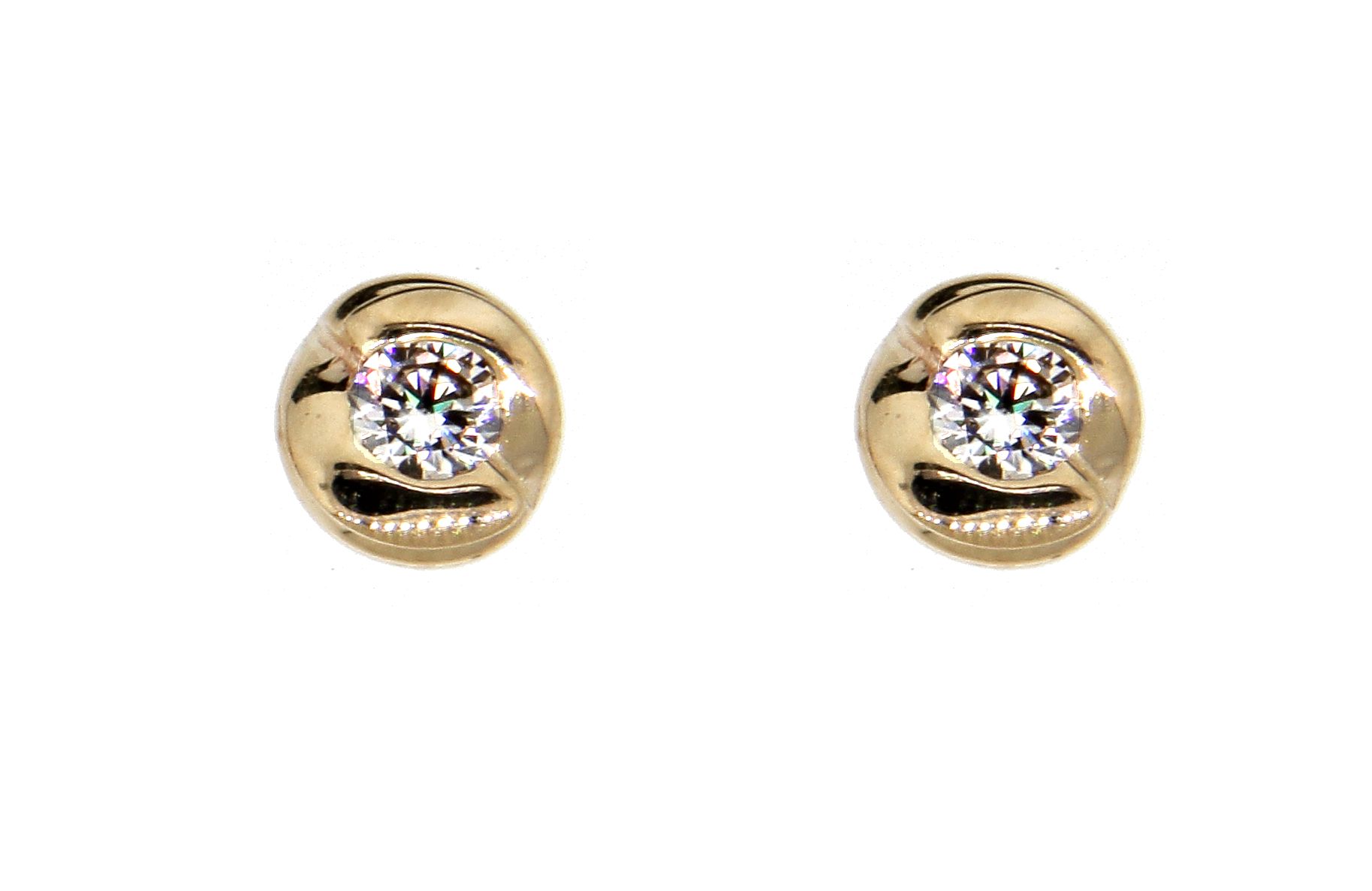 Aretes Bebé o Niña con Montadura 0.05 Quilates de Diamante en Oro Amarillo de 14 kt