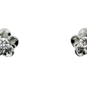 Aretes Bebé o Niña con Montadura 0.10 Quilates de Diamante en Oro Blanco de 14 kt