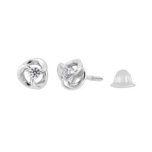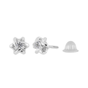 Aretes Bebé o Niña con Montadura 0.05 Quilates de Diamante en Oro Blanco de 14 kt