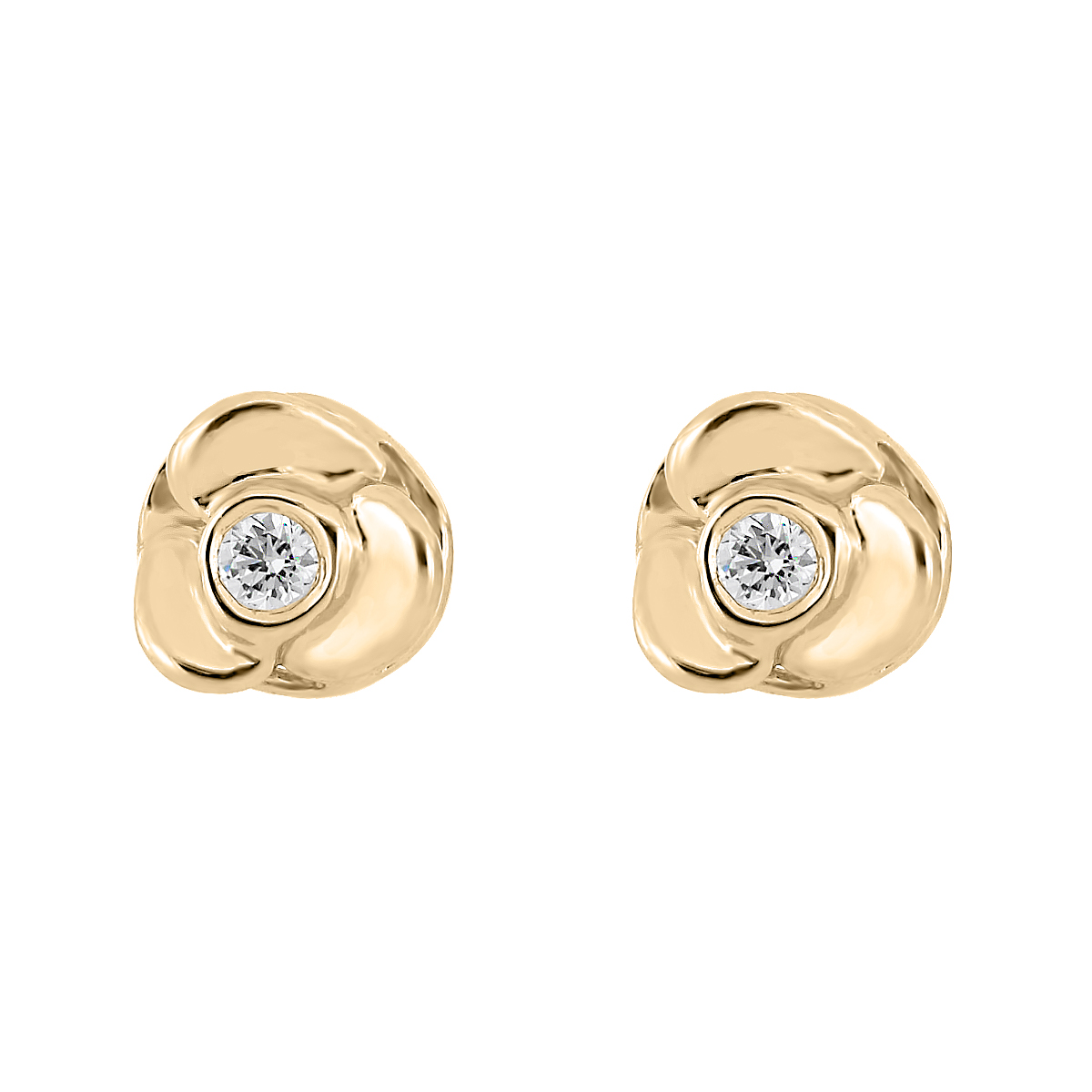 Aretes Bebé o Nña con Montadura 0.04 Quilates de Diamante en Oro Amarillo de 14 kt