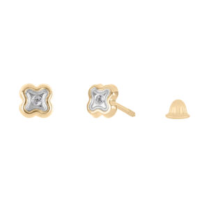 Aretes Bebé o Niña con Montadura 0.03 Quilates de Diamante en ORO COMBINADO de 14 kt