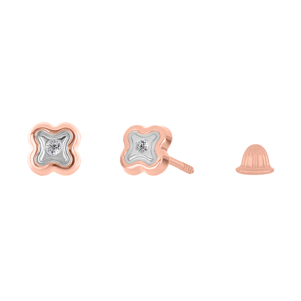 Aretes Bebé o Niña con Montadura 0.03 Quilates de Diamante en ORO COMBINADO de 14 kt