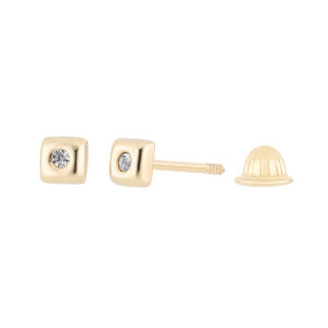 Aretes Bebé o Niña con Montadura 0.02 Quilates de Diamante en Oro Amarillo de 14 kt