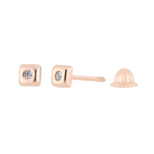 Aretes Bebé o Niña con Montadura 0.02 Quilates de Diamante en ORO ROSA de 14 kt