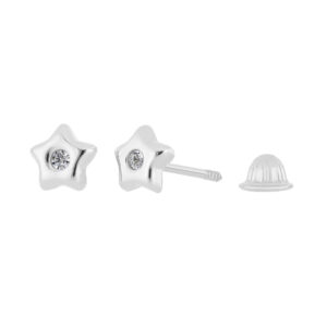 Aretes Bebé o Niña con Montadura 0.03 Quilates de Diamante en Oro Blanco de 14 kt