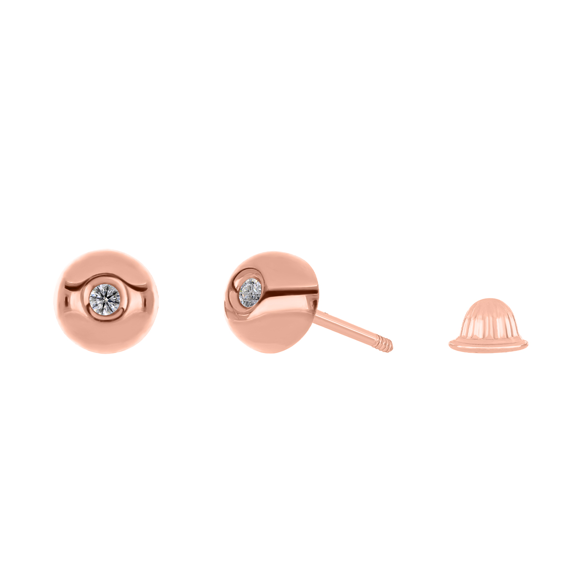 Aretes Bebé o Niña con Montadura 0.03 Quilates de Diamante en ORO ROSA de 14 kt