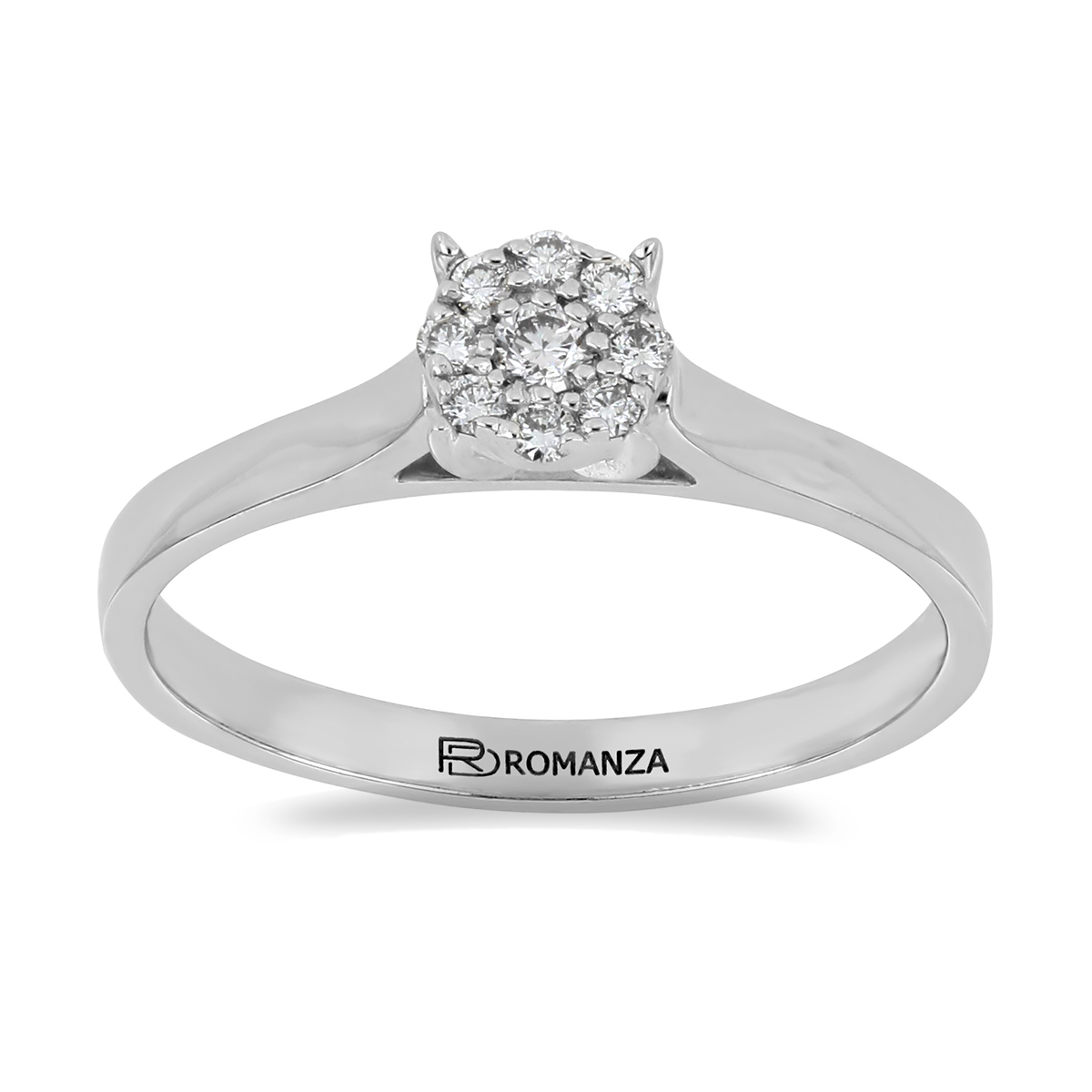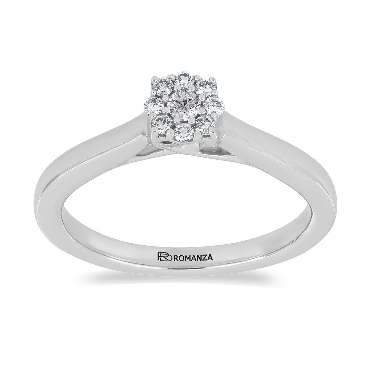 Anillo Solitario Roseta con Montadura 0.17 Quilates de Diamante en Oro Blanco de 14 kt