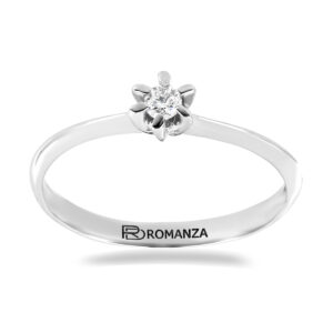 Anillo Solitario con Centro 0.06 Quilates de Diamante en Oro Blanco de 14 kt