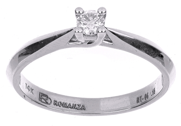 Anillo Solitario con Centro 0.15 Quilates de Diamante en ORO BLANCO de 14 kt
