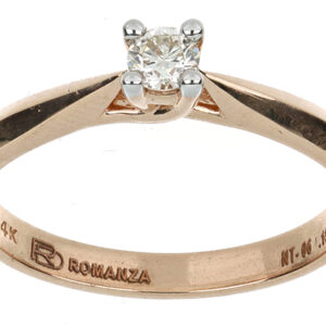 Anillo Solitario con Centro 0.15 Quilates de Diamante en ORO ROSA de 14 kt