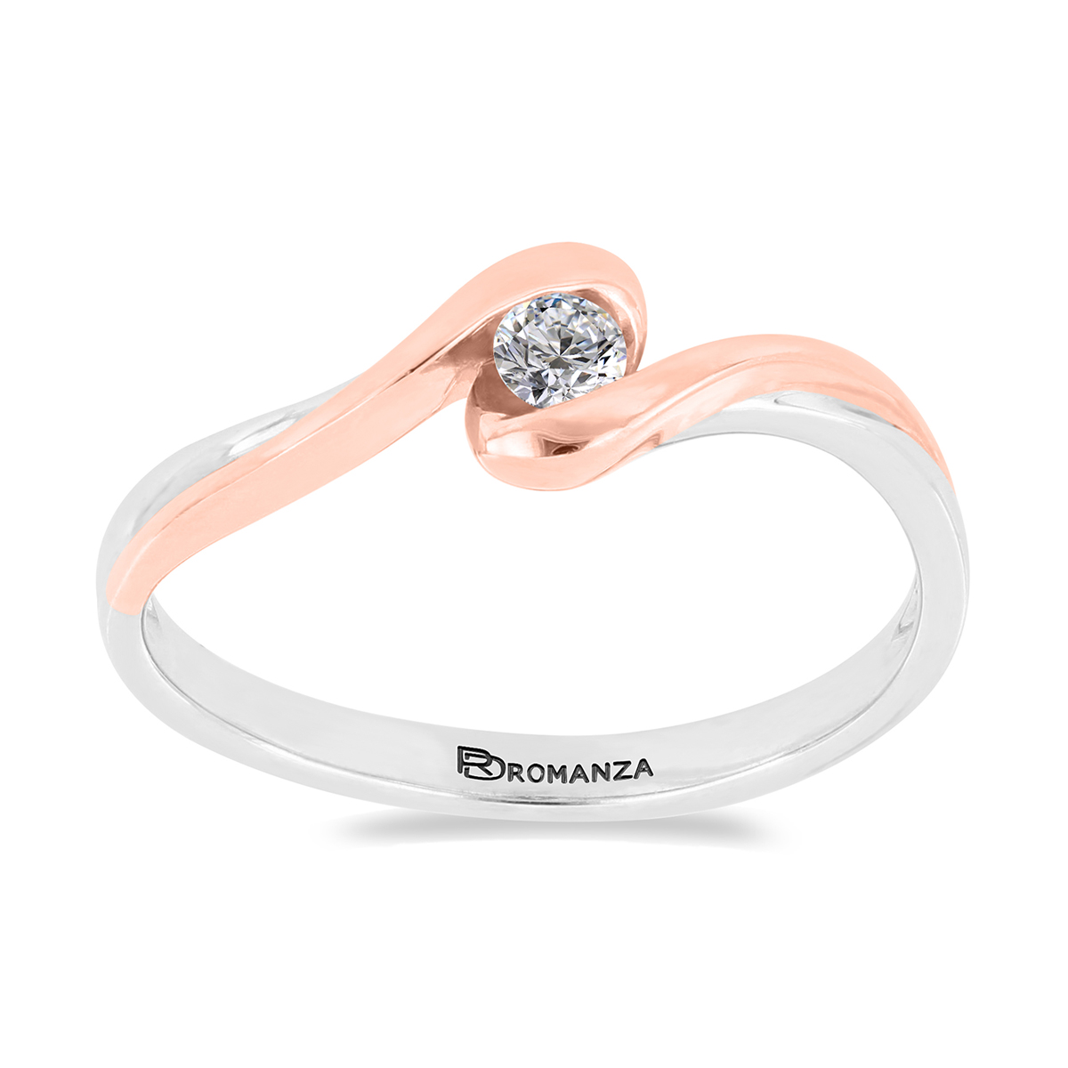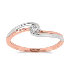 Anillo Solitario con Centro 0.06 Quilates de Diamante en Oro Combinado de 14 kt