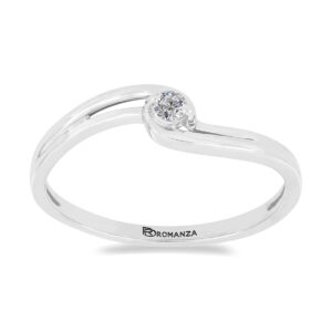 Anillo Solitario con Centro 0.05 Quilates de Diamante en Oro Blanco de 14 kt