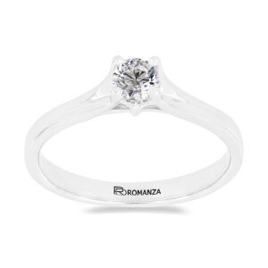 Anillo Solitario con Centro 0.40 Quilates de Diamante en Oro Blanco de 14 kt