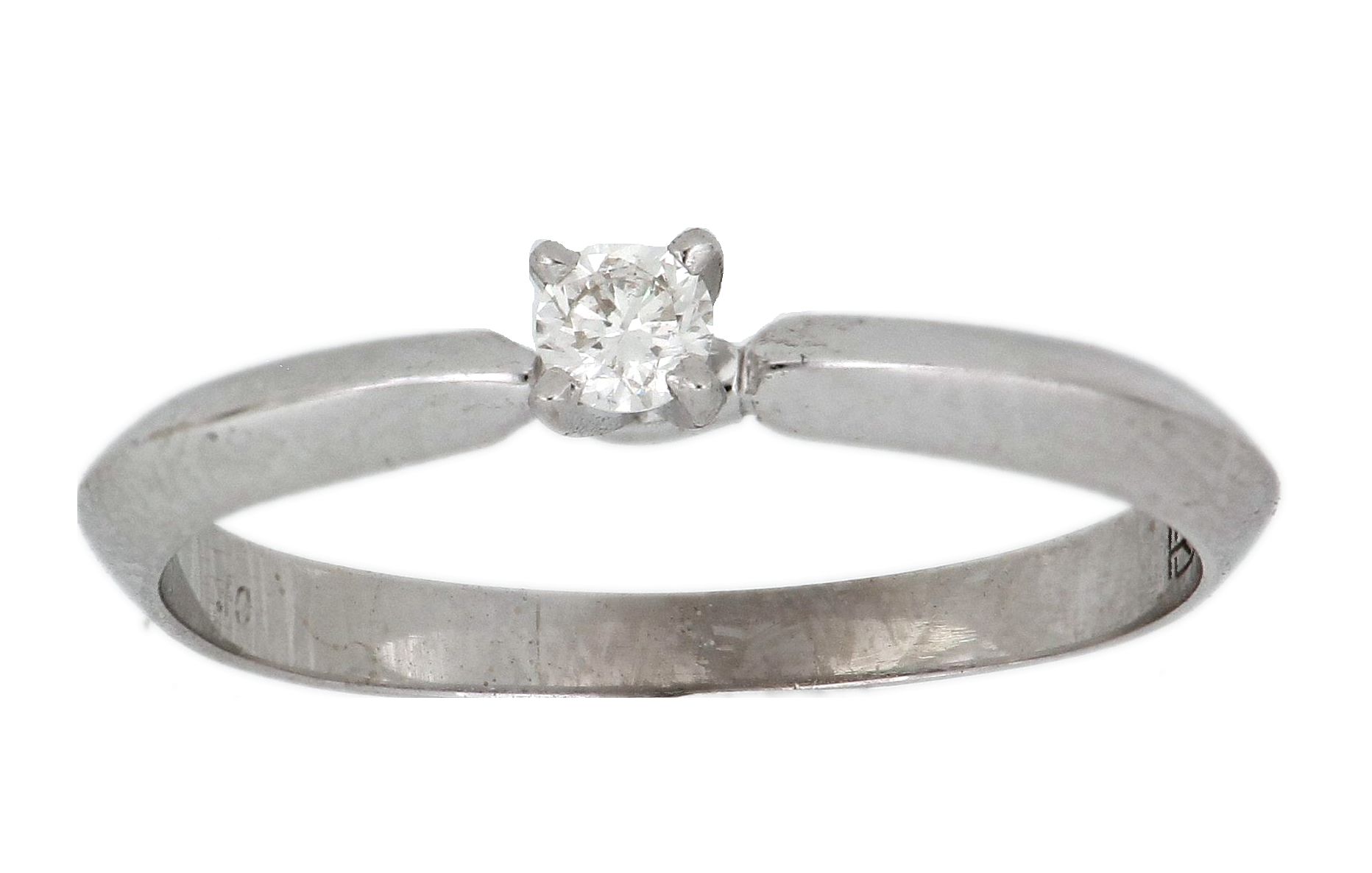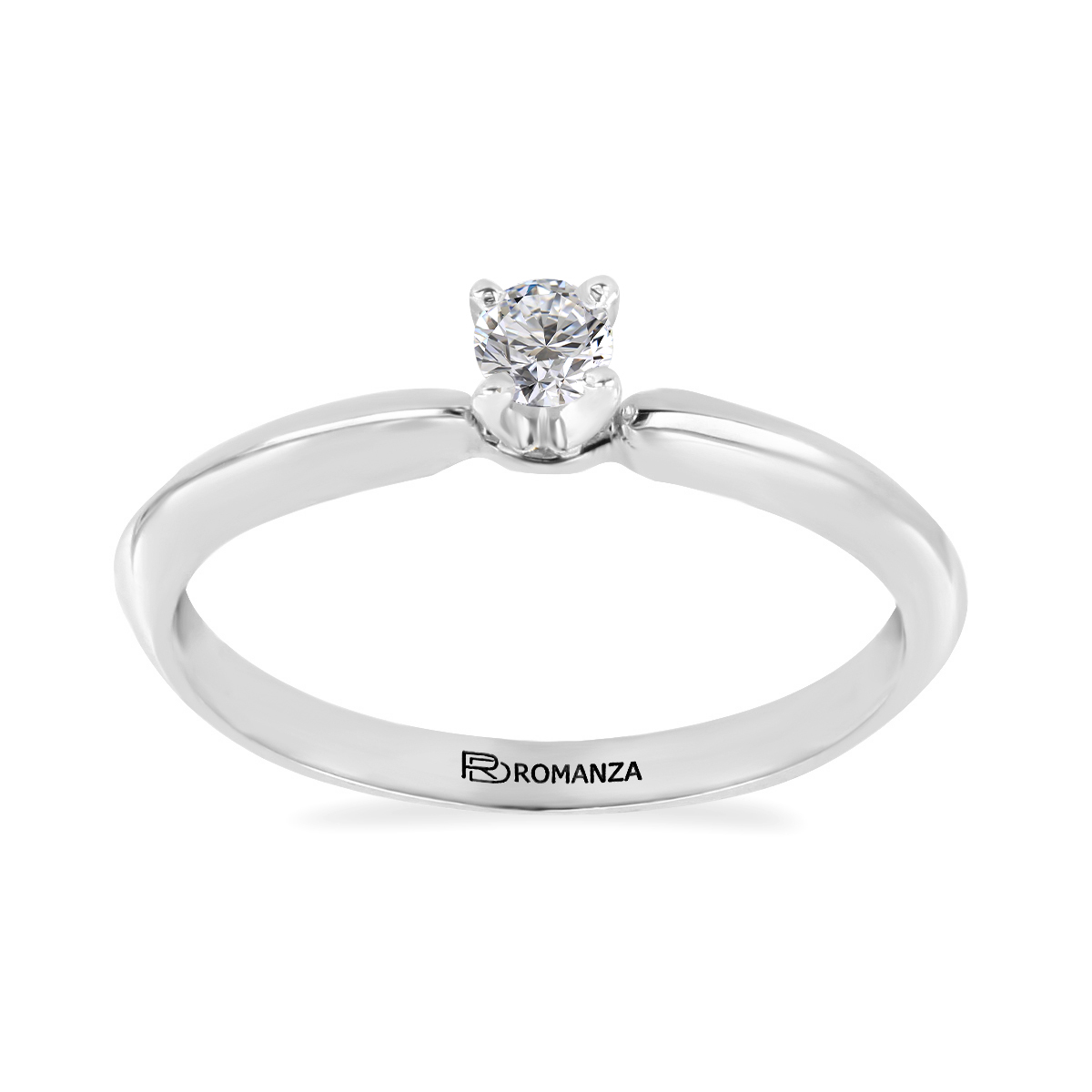 Anillo Solitario con Centro 0.15 Quilates de Diamante en Oro Blanco de 14 kt