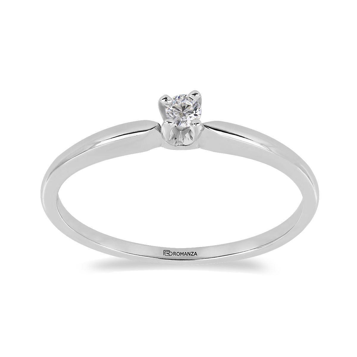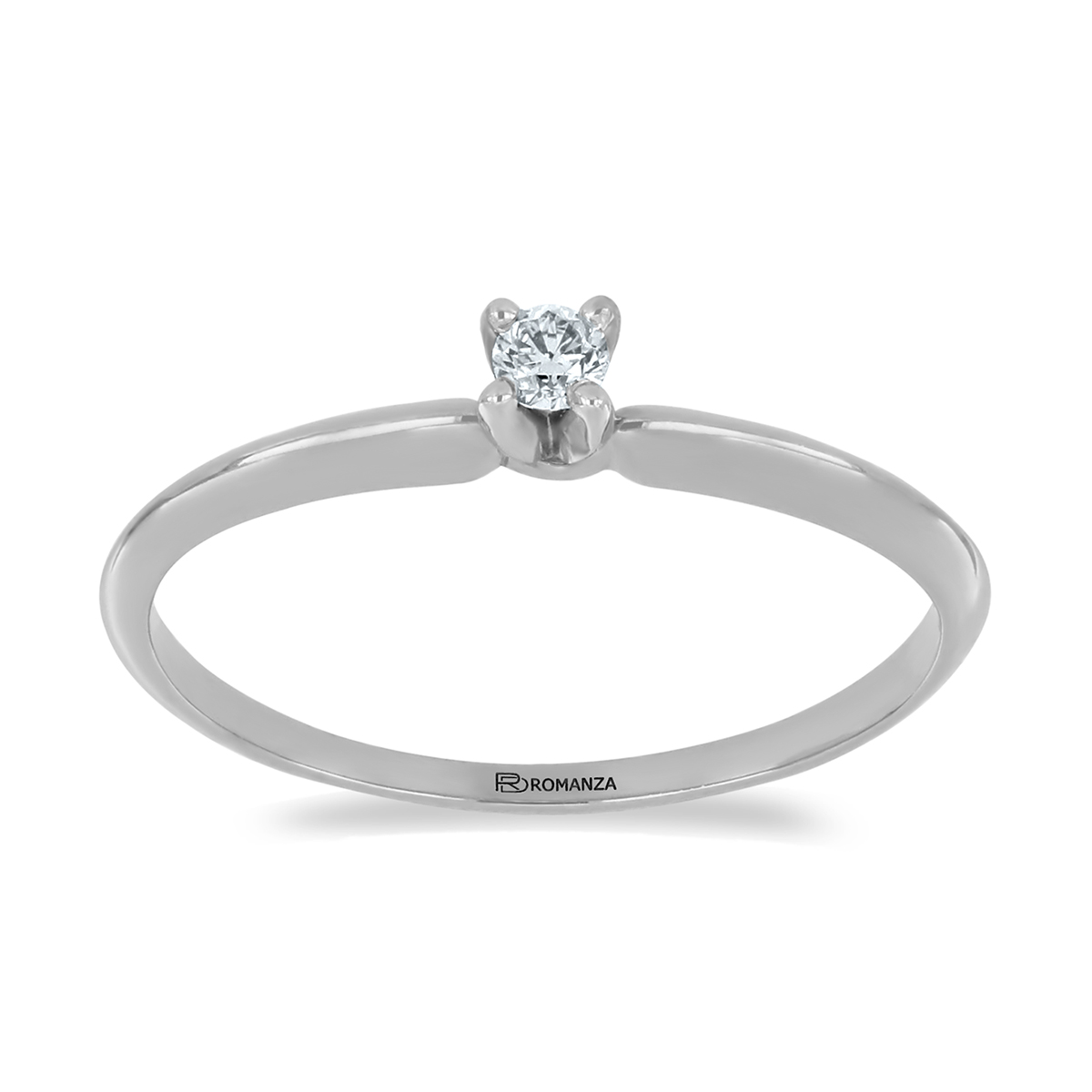Anillo Solitario con Centro 0.06 Quilates de Diamante en Oro Blanco de 14 kt