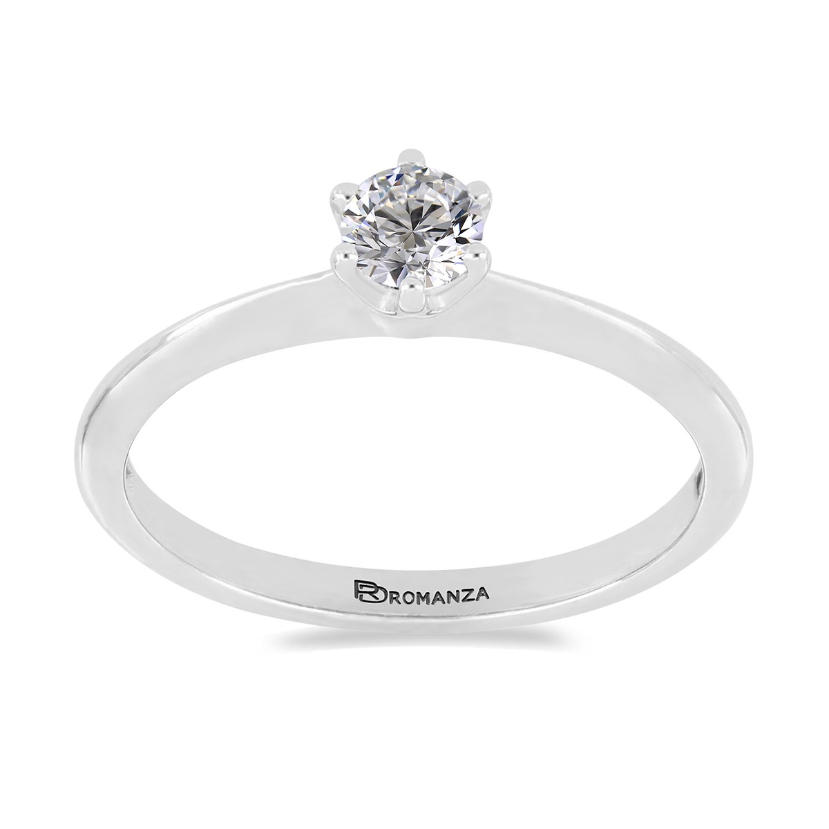 Anillo Solitario con Centro 0.20 Quilates de Diamante en Oro Blanco de 14 kt